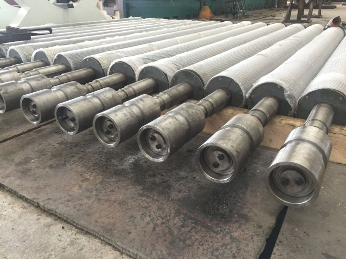真空壓榨輥的結構和真空伏輥類似,但是有幾點不同,真空壓榨輥的真空室寬度要窄一點些,通常為100~;真空壓榨輥輥面小孔的直徑較小,為4.5mm左右。輥面開孔率較低,一般為15%~25%。真空壓榨輥輥筒表面需要包膠,膠層厚度20~。真空輥的殼體
